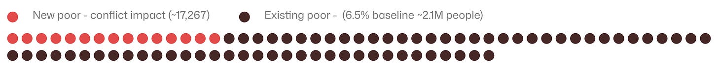 The 17,267 people the World Bank projects will be pushed into poverty by the conflict are not in hydropower. They are in tourism, transport, and the services economy, households whose income flows from a family member working in the Gulf, whose cost of living is rising simultaneously because fuel hikes flow through to food and transport, and who have no social protection to fall back on. The World Bank buries this number in the report. It should not be buried.