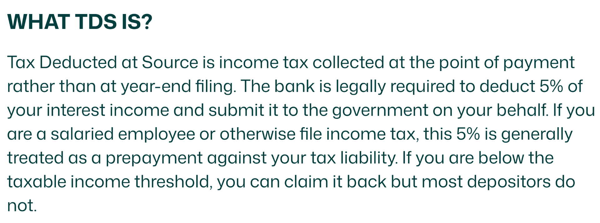 First, TDS is deducted at each interest payout, typically quarterly or at maturity, depending on your agreement. This means compounding happens on the post-tax amount, not the gross amount. The bank may advertise an effective annual yield that assumes gross compounding. The reality is compounding on 95% of the interest each period.