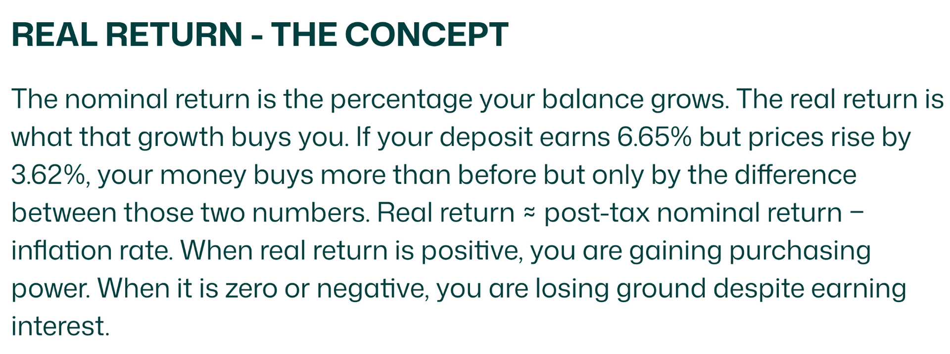 The 7% that appears on the banner outside your bank is real. You will earn it. The question is what you earn after the government takes its 5%, and what that remaining amount buys you after inflation has done its work for the year. Right now, with inflation at 3.62%, the answer is approximately 3% in real terms, which is a positive return, and better than recent years. Understanding that number is the difference between knowing your savings are growing and knowing how much.